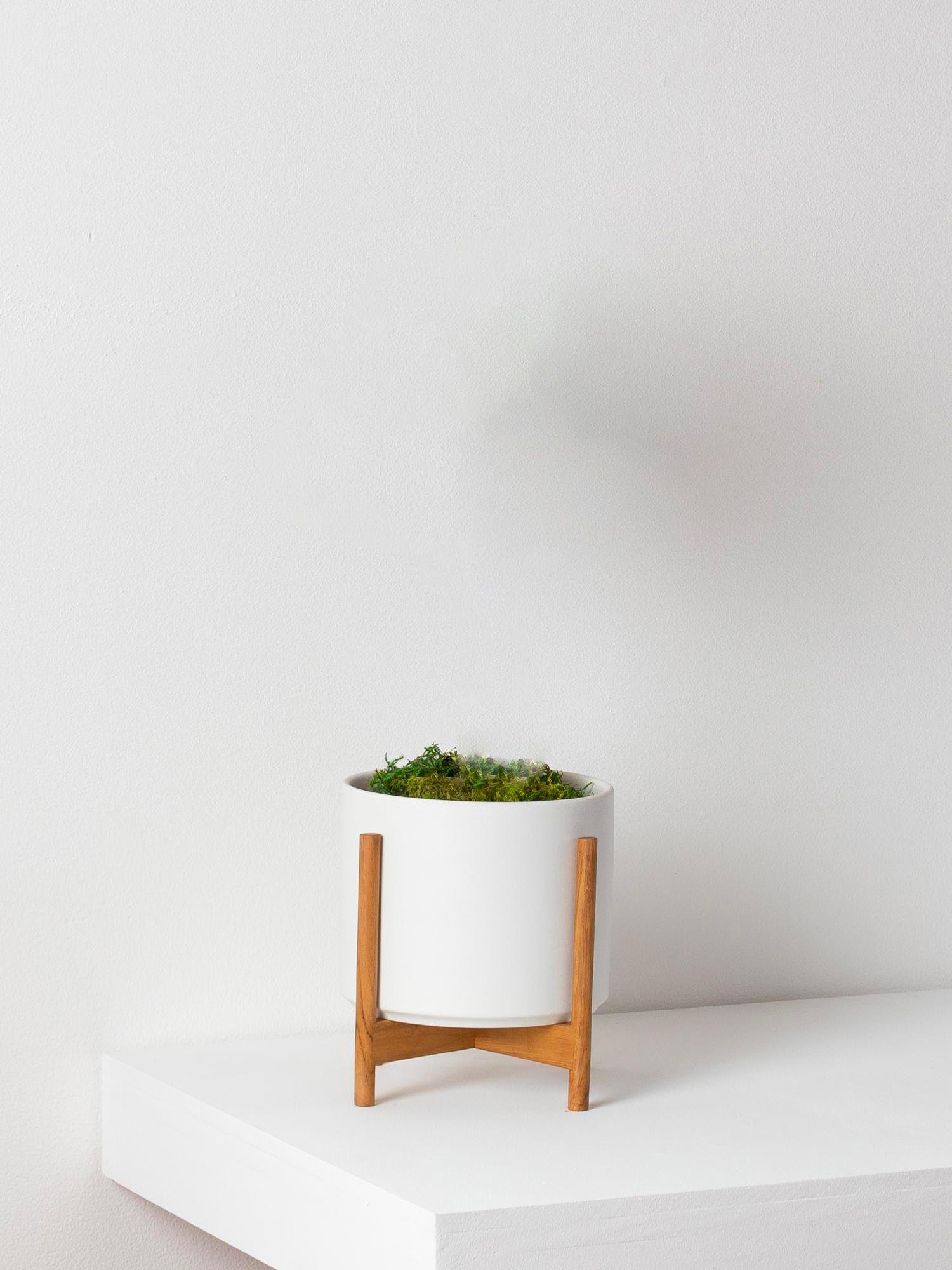 Hergestellt aus hochwertiger Keramik und begleitet von einem handgefertigten Ständer aus Massivholz, bietet er ein zeitloses Design, das zu jedem Stil passt.