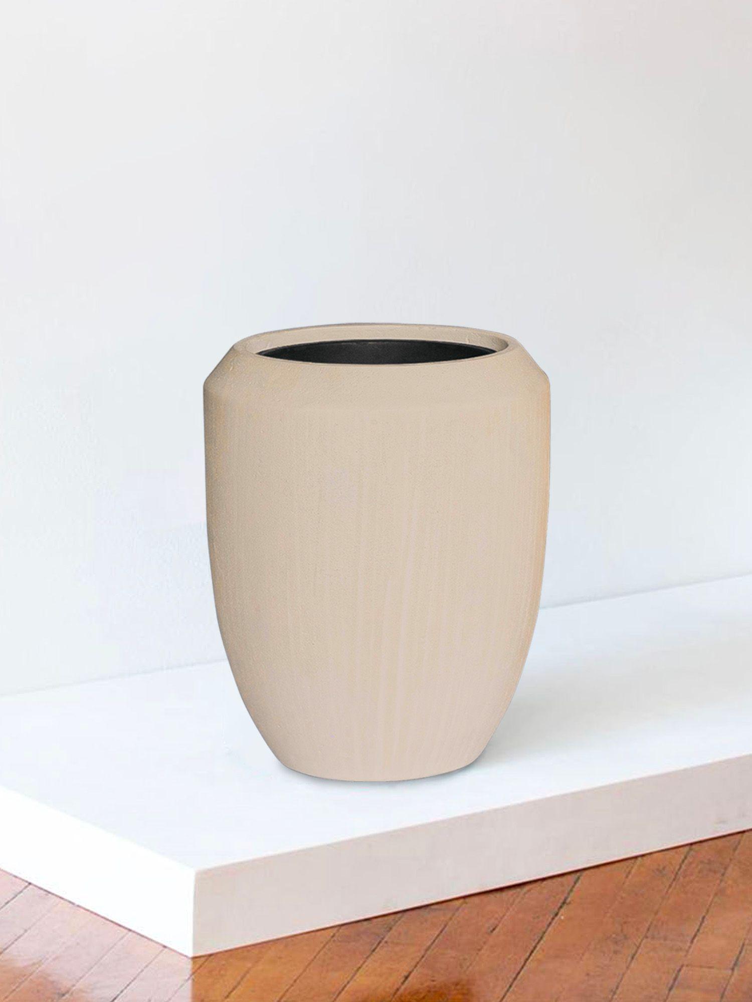 Eigenschaften des Übertöpfs:- Hergestellt aus Polystone, einem Material aus Kalksteinpulver und Harz, das die Optik von Naturstein mit einem leichten Gewicht verbindet.