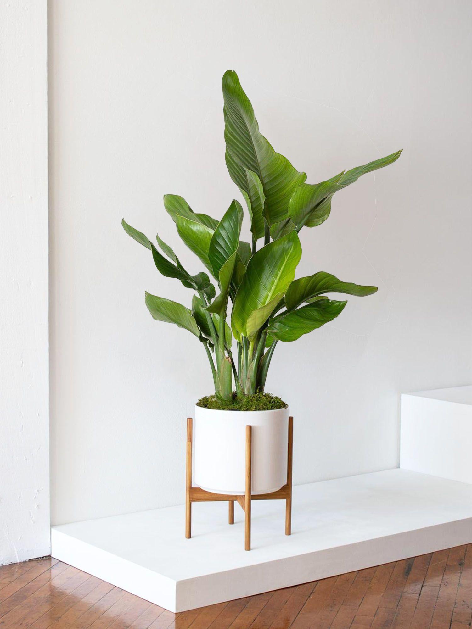 Mit langen, eleganten Blättern, die von unten aufsteigen, ist der Paradiesvogel eine beliebte Zimmerpflanze, die sofort eine Dschungelatmosphäre schafft. Unvollkommen wie die Natur selbst, zeigt diese Pflanze große Blätter mit natürlichen Spalten und Locken.