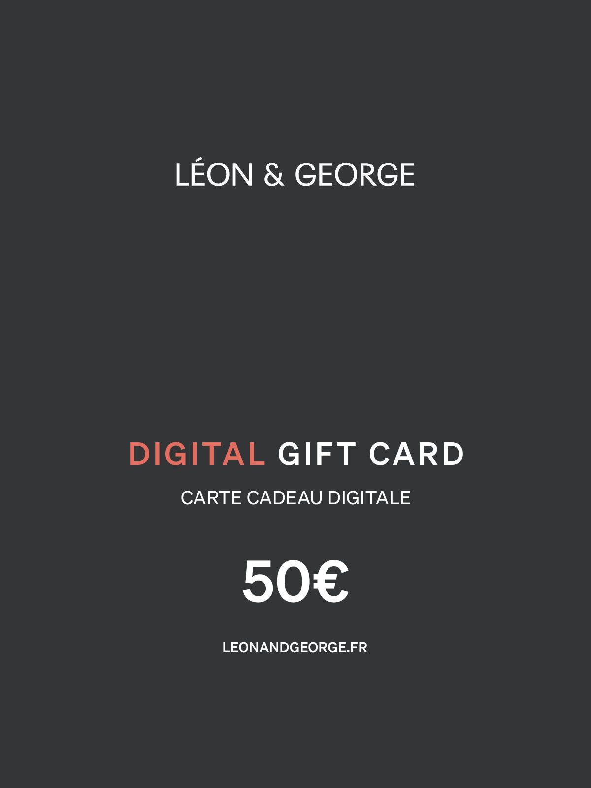 questionNotre carte-cadeau digitale Léon & George personnalisée et envoyée par email, prête à être imprimée ou transférée à un être cher. Elle s'annonce comme le cadeau idéal.