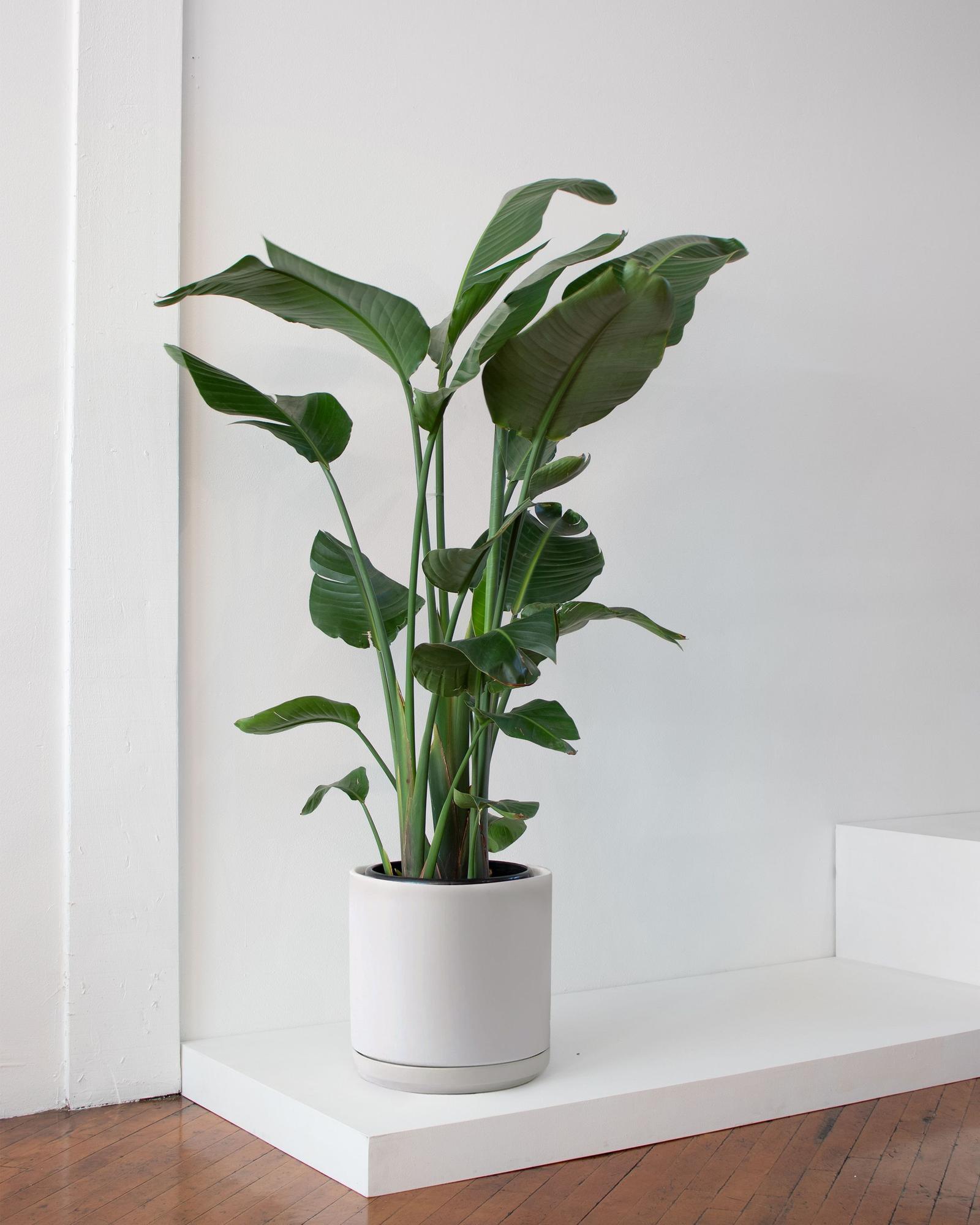 With long elegant leaves rising up from the bottom, the Bird of Paradise is a popular indoor plant for creating that instant jungle atmosphere. Imperfect like nature herself, this plant exhibits large foliage with natural splits and curls.