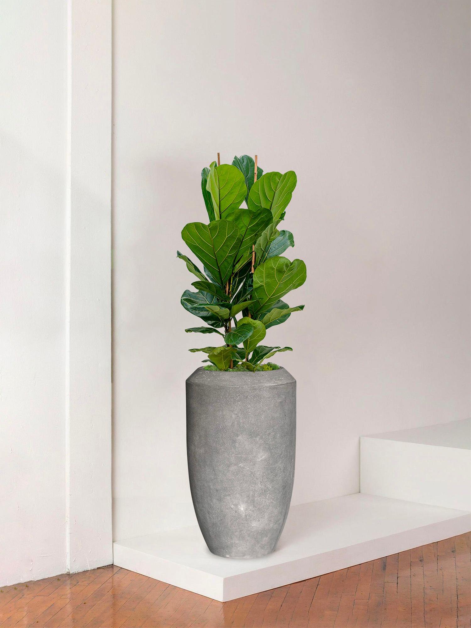 Fiddle Leaf Figs are a popular plant with interior designers and often appear in the pages of trendy magazines as a staple of fashion brand photography. Standing at over 5 feet tall the Fiddle Leaf Fig Tree is the perfect balance of volume and grace. This plant is truly a must-have for all who appreciate style and greenery.