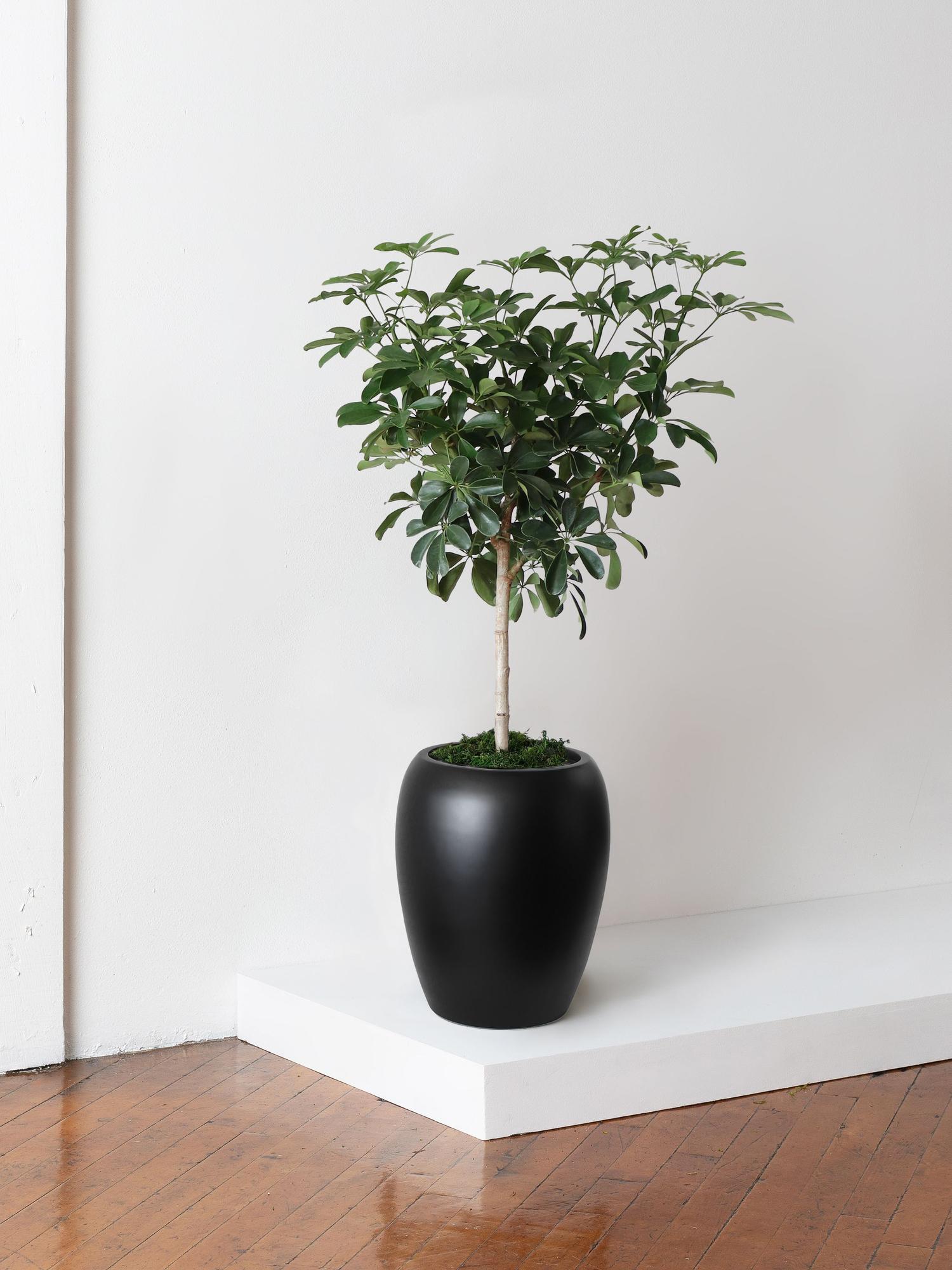 A gorgeous statement tree with an air-purifying punch, the Schefflera is renowned for its abundant canopy of oval leaves that grow in circular, umbrella-shaped configurations. Hardy and resilient, the Schefflera needs watering only when its topsoil is dry, and thrives in medium to bright indirect light.