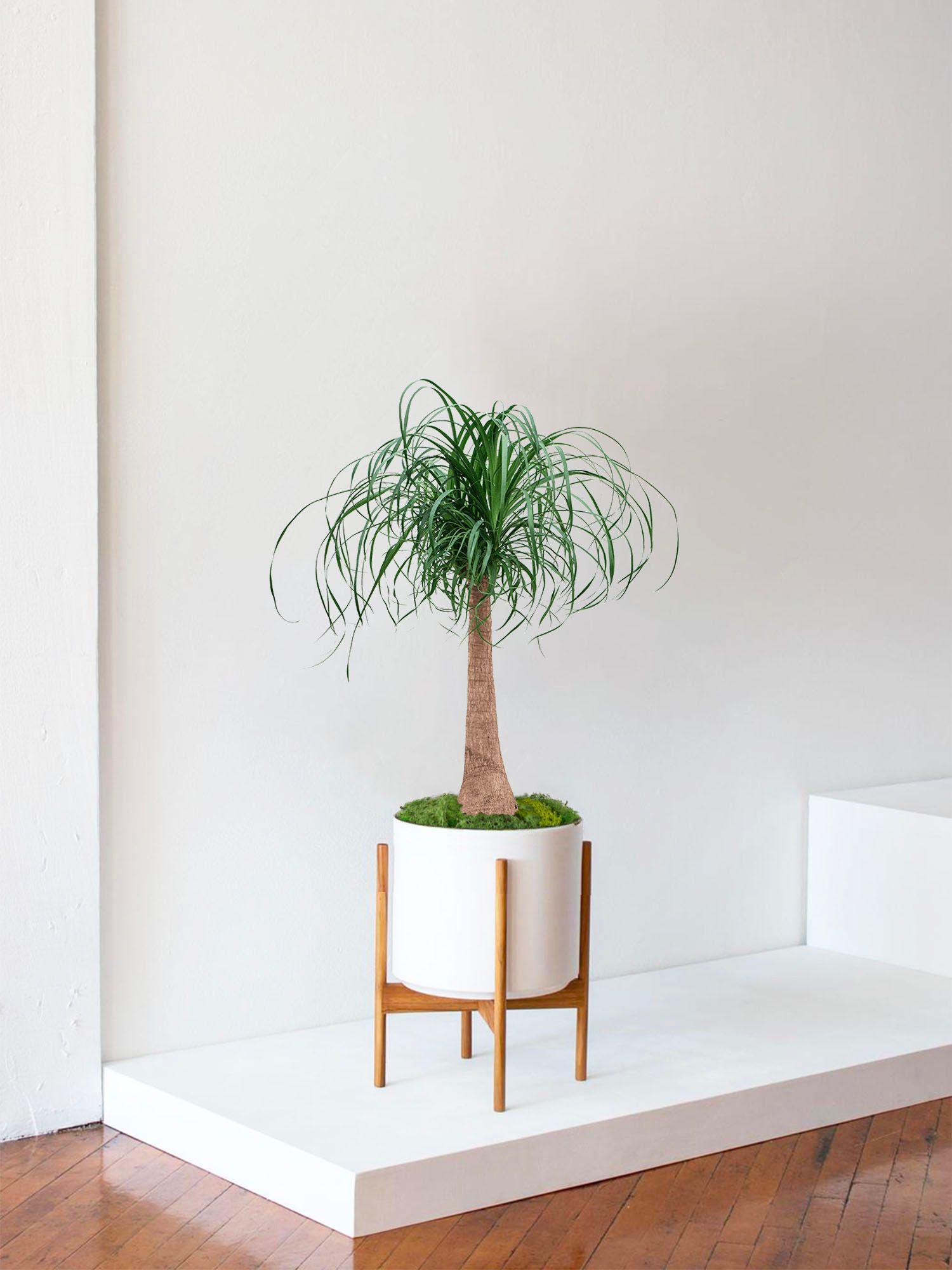 Graphique et ultra facile à vivre, le Pied d’éléphant (Beaucarnea recurvata), aussi appelé Palmier queue de cheval (Ponytail Palm), est la plante “installez-le et oubliez-le” par excellence. Son tronc renflé stocke l’eau, ce qui le rend très tolérant aux oublis d’arrosage. Il aime la lumière vive, mais s’adapte aussi à une luminosité moyenne.