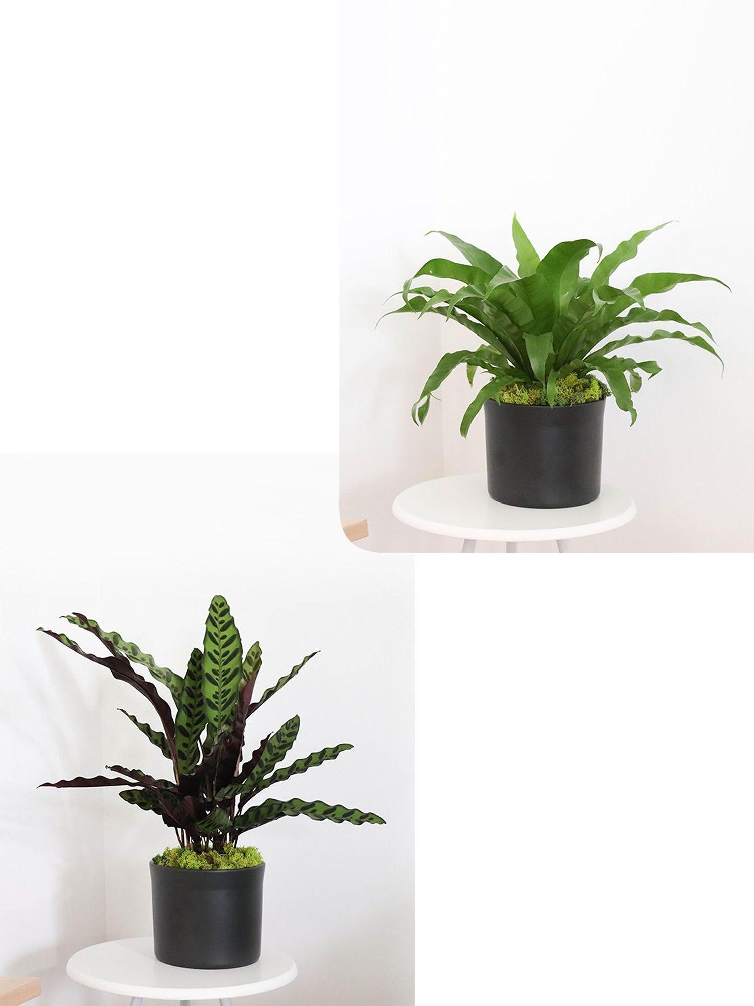 Duo Calathea Paon de Rio X Fougère nid d'oiseau 60cm / 50 cm Medium Mid-Century