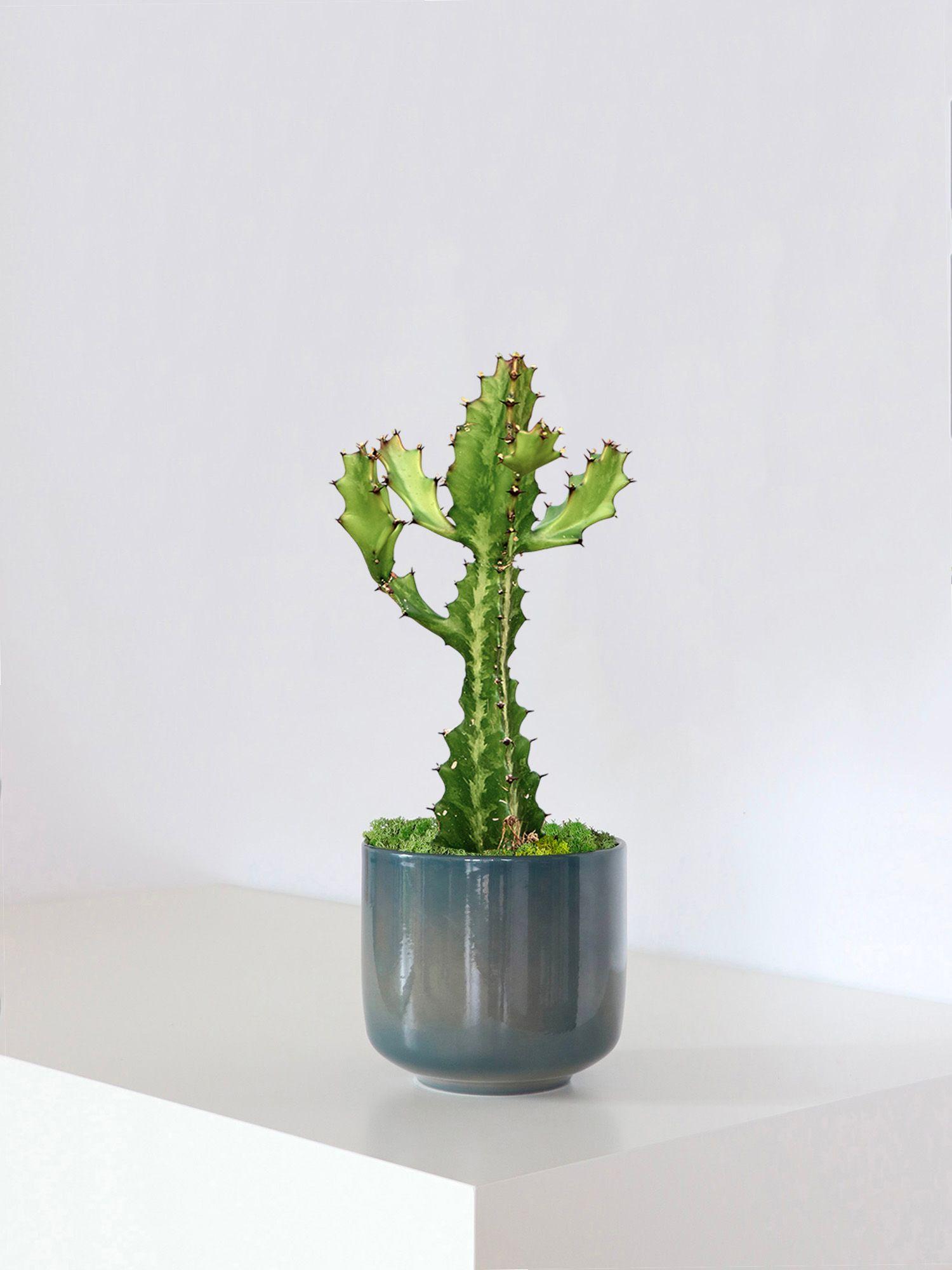 Sculpturale et audacieuse, l’Euphorbe Marbrée s’impose comme une véritable pièce de design végétal. Avec ses tiges anguleuses marquées de motifs marbrés, cette succulente rare attire tous les regards et donne immédiatement une touche contemporaine, presque architecturale, à n’importe quel espace. Idéale pour un intérieur lumineux, elle sublime aussi bien les décors minimalistes que les ambiances plus éclectiques.