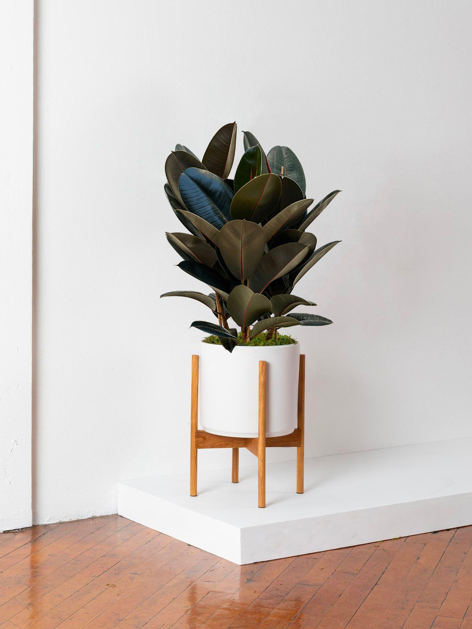 Très élégant et décoratif avec ses grandes feuilles d’un vert profond parcourues d’une nervure centrale rouge Burgundy le Ficus Elastica ou plante caoutchouc, se déploie majestueusement et s’épanouit rapidement dans les intérieurs lumineux. Son aspect zen et apaisant et sa facilité d’entretien font de lui une plante d’intérieur très appréciée de tous.