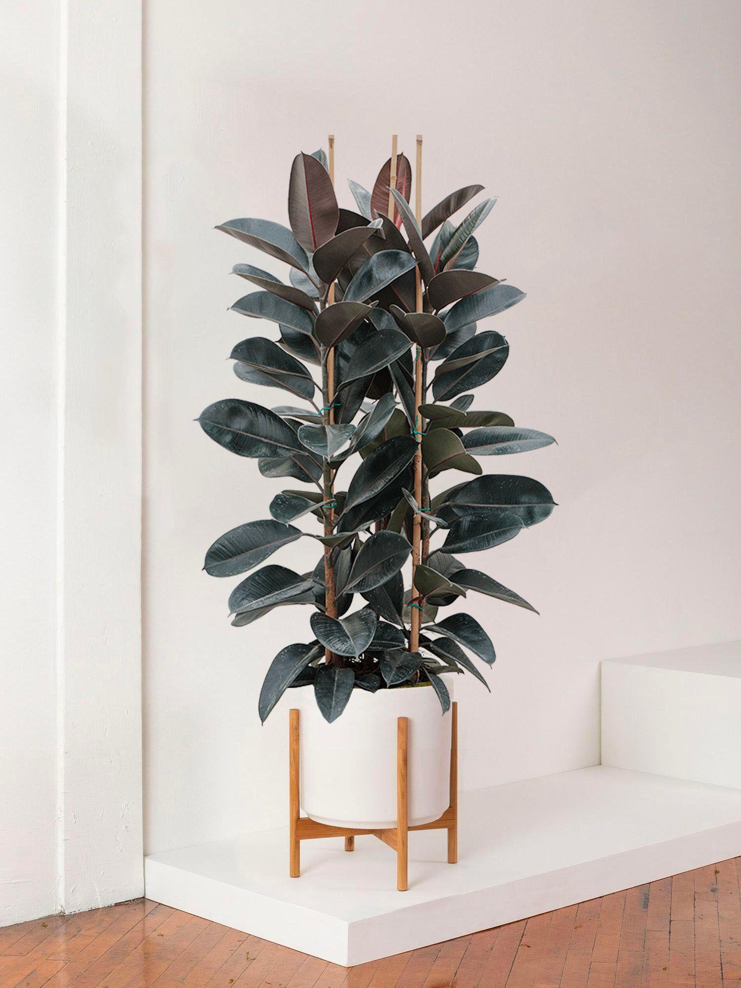 Très élégant et décoratif avec ses grandes feuilles d’un vert profond parcourues d’une nervure centrale rouge Burgundy le Ficus Elastica ou plante caoutchouc, se déploie majestueusement et s’épanouit rapidement dans les intérieurs lumineux. Son aspect zen et apaisant et sa facilité d’entretien font de lui une plante d’intérieur très appréciée de tous.