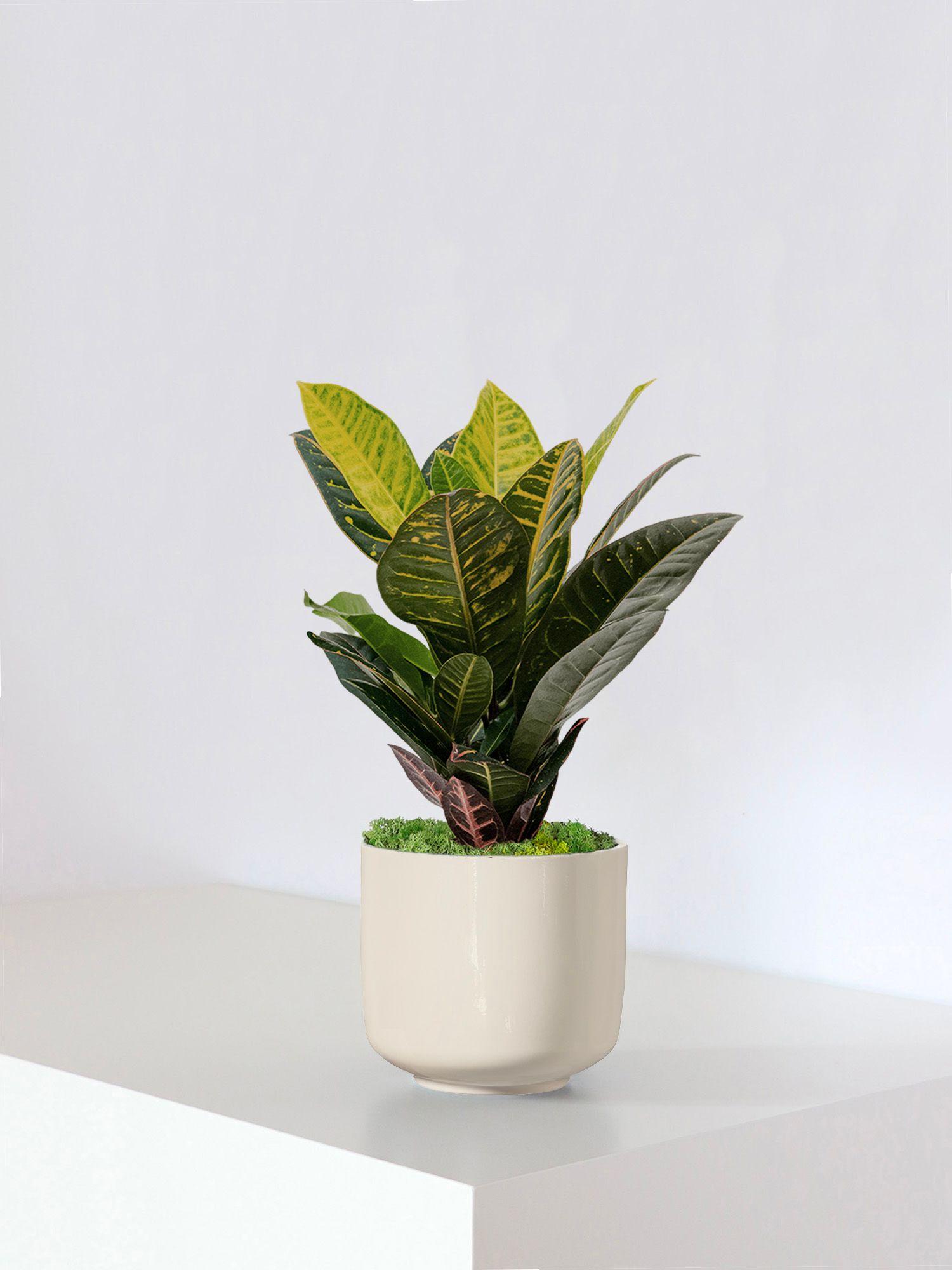 Le Golden Petra est une plante audacieuse et éclatante qui apporte une touche de couleur bienvenue. Cette variété facile d'entretien de la famille des Crotons a besoin d'une lumière vive pour développer ses teintes riches et colorées.