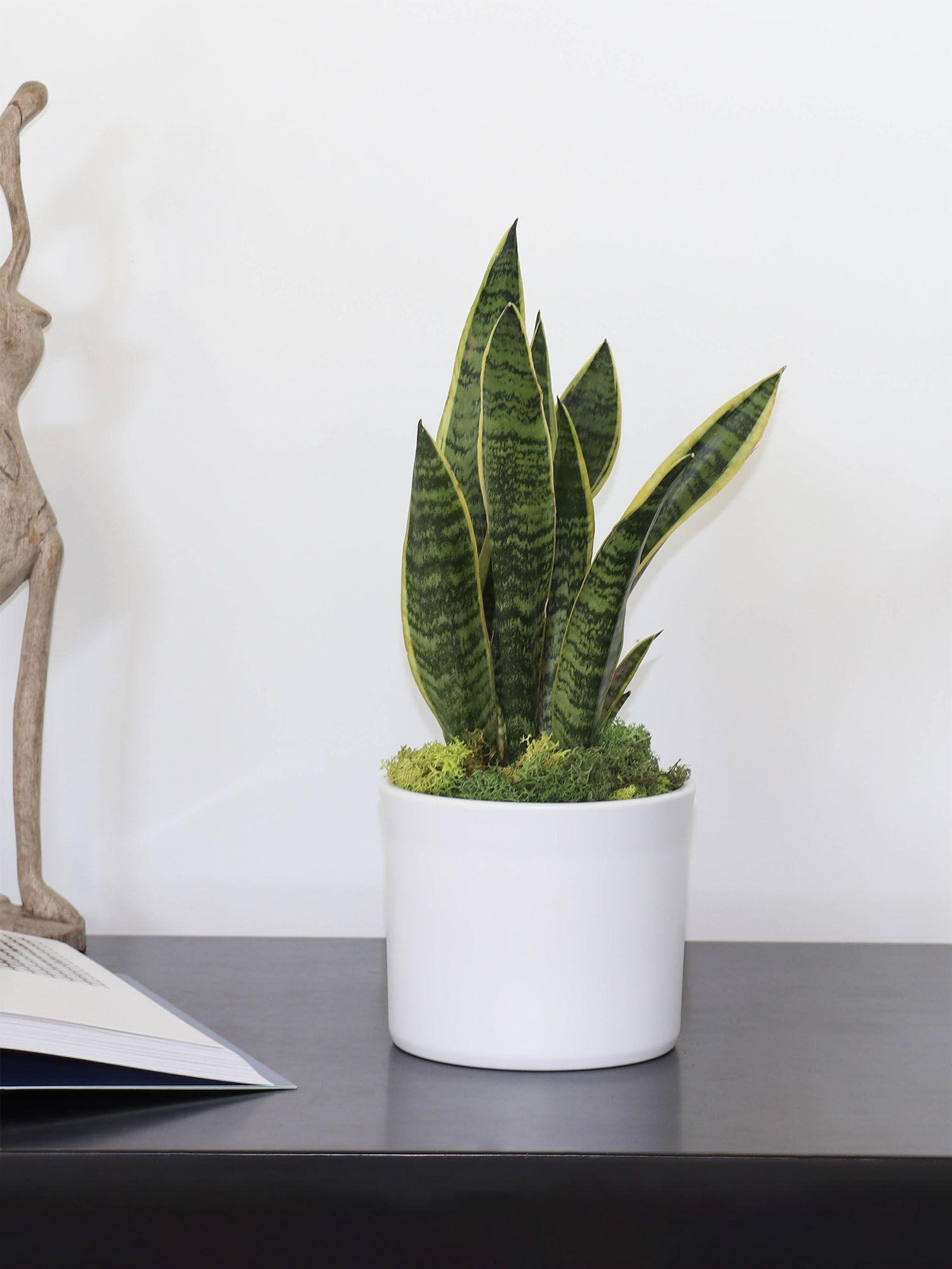 La Sansevieria est une succulente extrêmement résistante qui demande peu d'entretien. Idéale pour tous ceux qui n'ont pas la main verte, elle dispose d'un feuillage marbré et vertical graphique apportant modernité et panache à votre décor. Elle est aussi dépolluante !